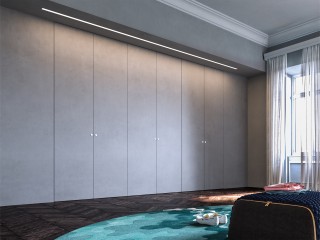 ECLISSE Syntesis® Areo si compone di un telaio in alluminio e di un pannello rivestito in melaminico. Questo rivestimento rende il pannello dell’anta pronto per essere pitturato e rifinito come la parete oppure ricoperto con carta da parati, all’insegna della totale omogeneità.