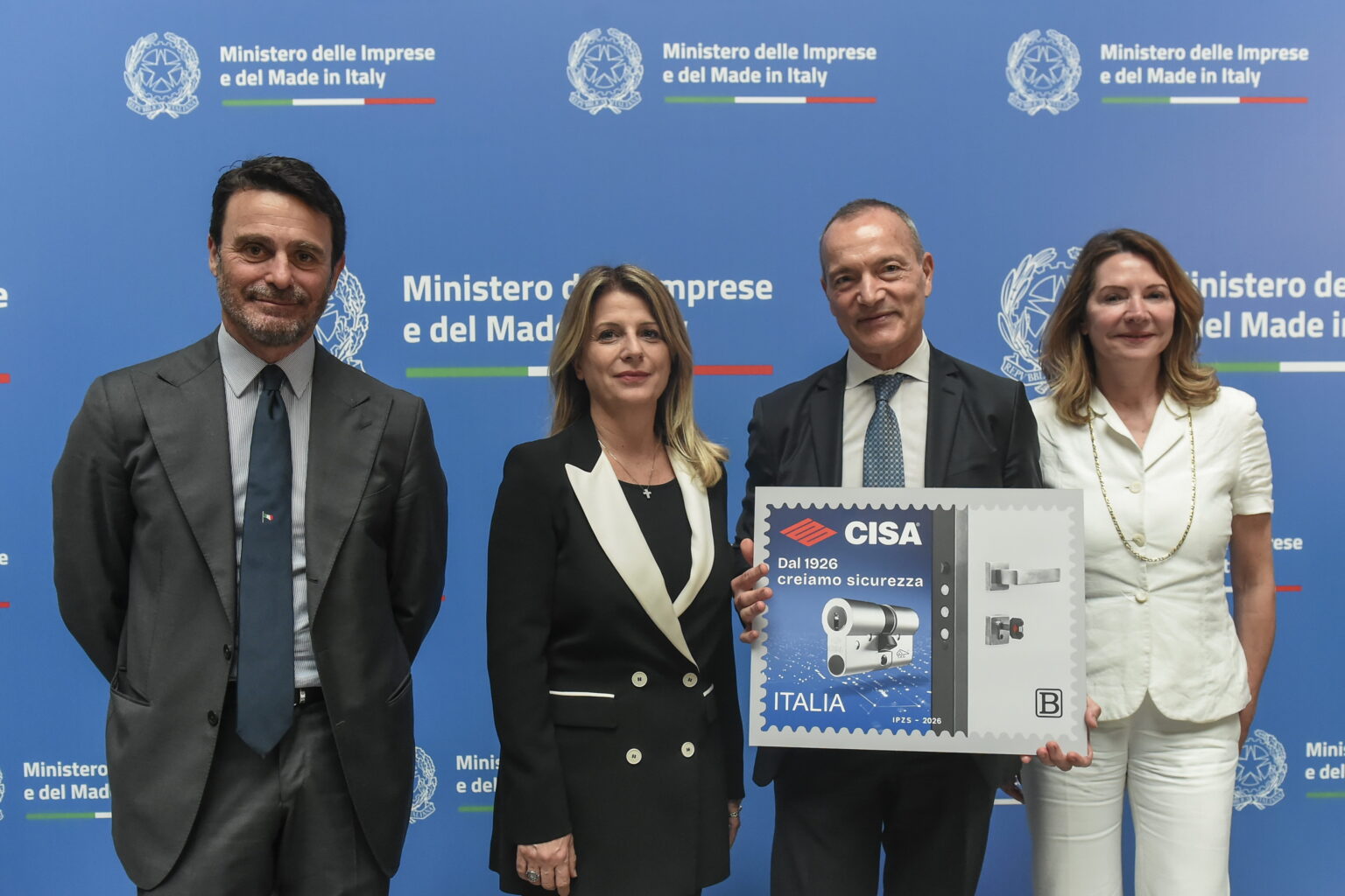 La cerimonia ufficiale di presentazione e annullo filatelico si è tenuta il 9 aprile 2026 presso il Salone degli Arazzi di Palazzo Piacentini, alla presenza del Sottosegretario Fausta Bergamotto del Ministero delle Imprese e del Made in Italy, dei rappresentanti di Poste Italiane e dell’Istituto Poligrafico e Zecca dello Stato (IPZS), oltre ai vertici delle aziende protagoniste.