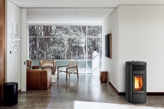 Stufa a pellet dal design classico-contemporaneo con struttura stagna. Cute, grazie all’altezza ridotta (80,5 cm) e allo scarico fumi superiore, può essere facilmente collocata in abitazioni in cui la canna fumaria è già esistente. È disponibile anche lo scarico fumi posteriore, con kit copriforo opzionale.