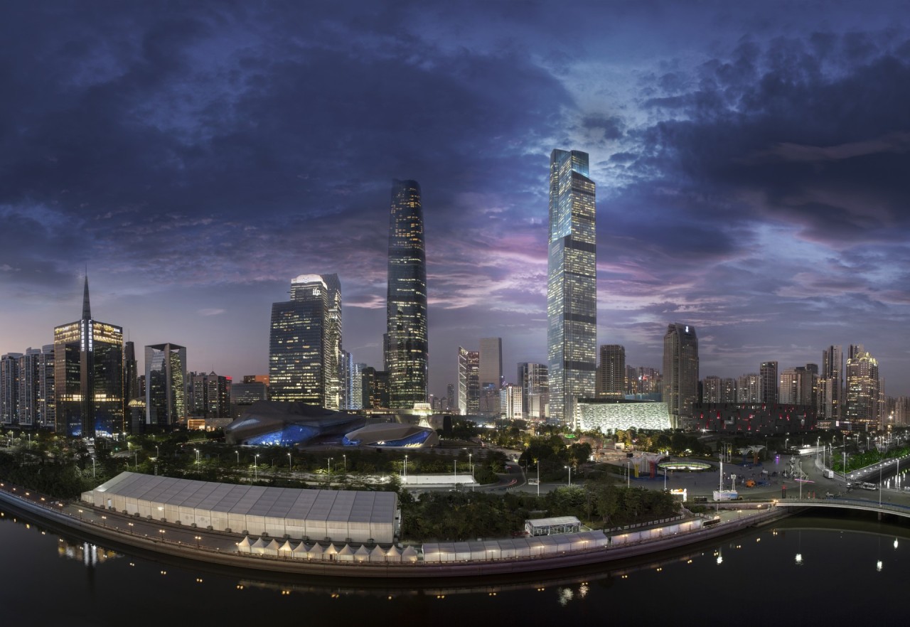 Completato nel 2016, il CTF Finance Centre, alto 530 metri, è l’edificio più alto della città e rappresenta la recente prosperità e crescita urbana della regione. Al suo interno si trovano 95 ascensori, 2 tra i più veloci al mondo capaci di trasportare le persone passando dal piano -5 al 94 in soli 45 secondi. La facciata è realizzata in terracotta, con finitura lucida, anche in questo caso scelta che assicura anche vantaggi ambientali: si tratta in fatti di un materiale autopulente e resistente alla corrosione. L’edificio adotta inoltre anche ulteriori misure di sostenibilità, come i refrigeratori ad alta efficienza e il recupero di calore.