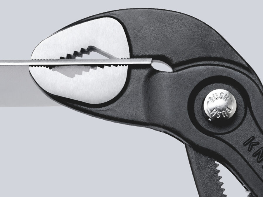 – Superfici delle ganasce con denti trattati con speciale tempera, durezza dei denti ca. 61 HRC: presa sicura per un’elevata stabilitÃ