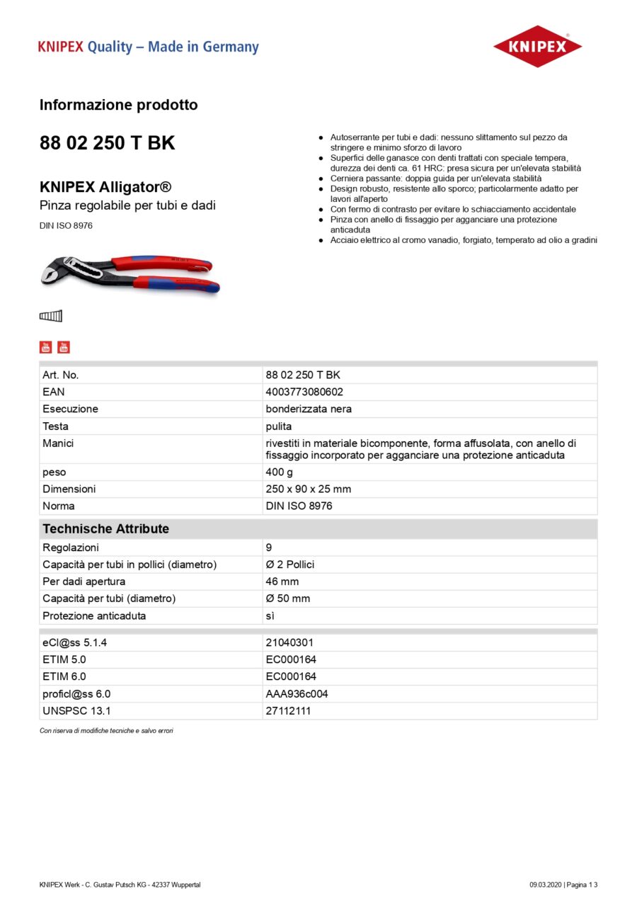 Pinza regolabile per tubi e dadi rivestiti in materiale bicomponente, forma affusolata, con anello di fissaggio incorporato per agganciare una protezione anticaduta bonderizzata nera 250 mm (confezione self-service/blister)