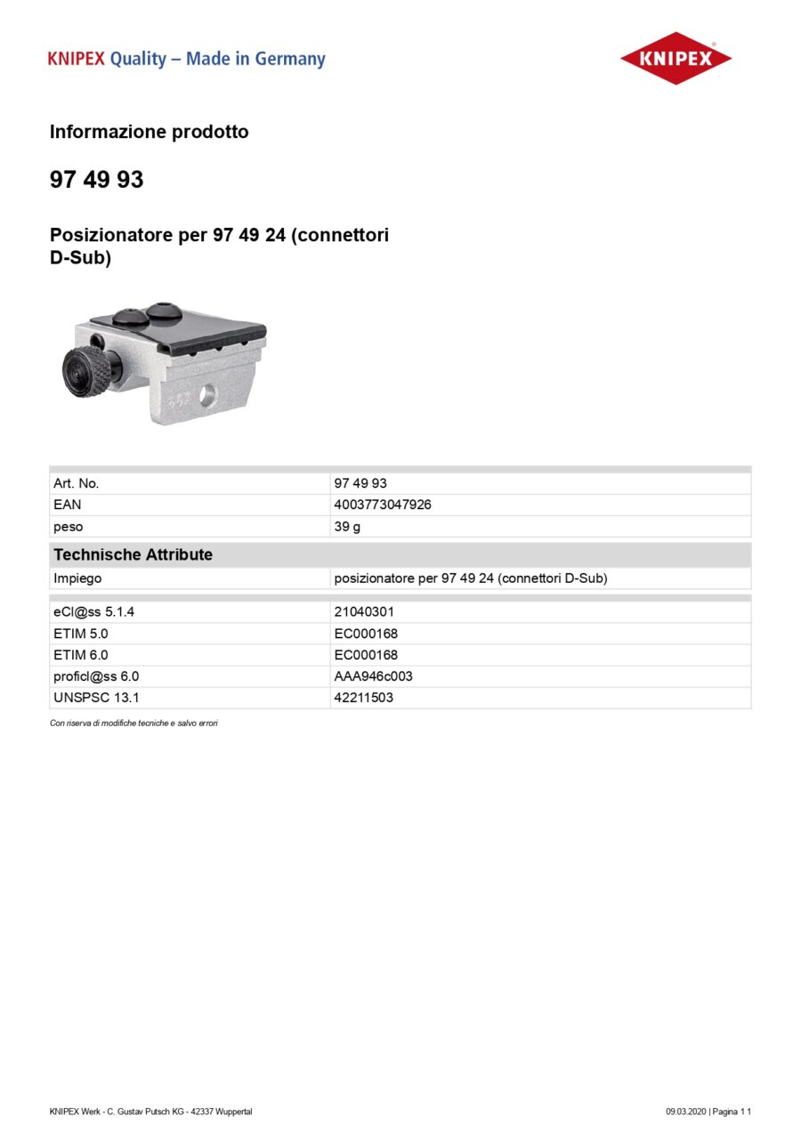 Posizionatore per 97 49 24 (connettori D-Sub)