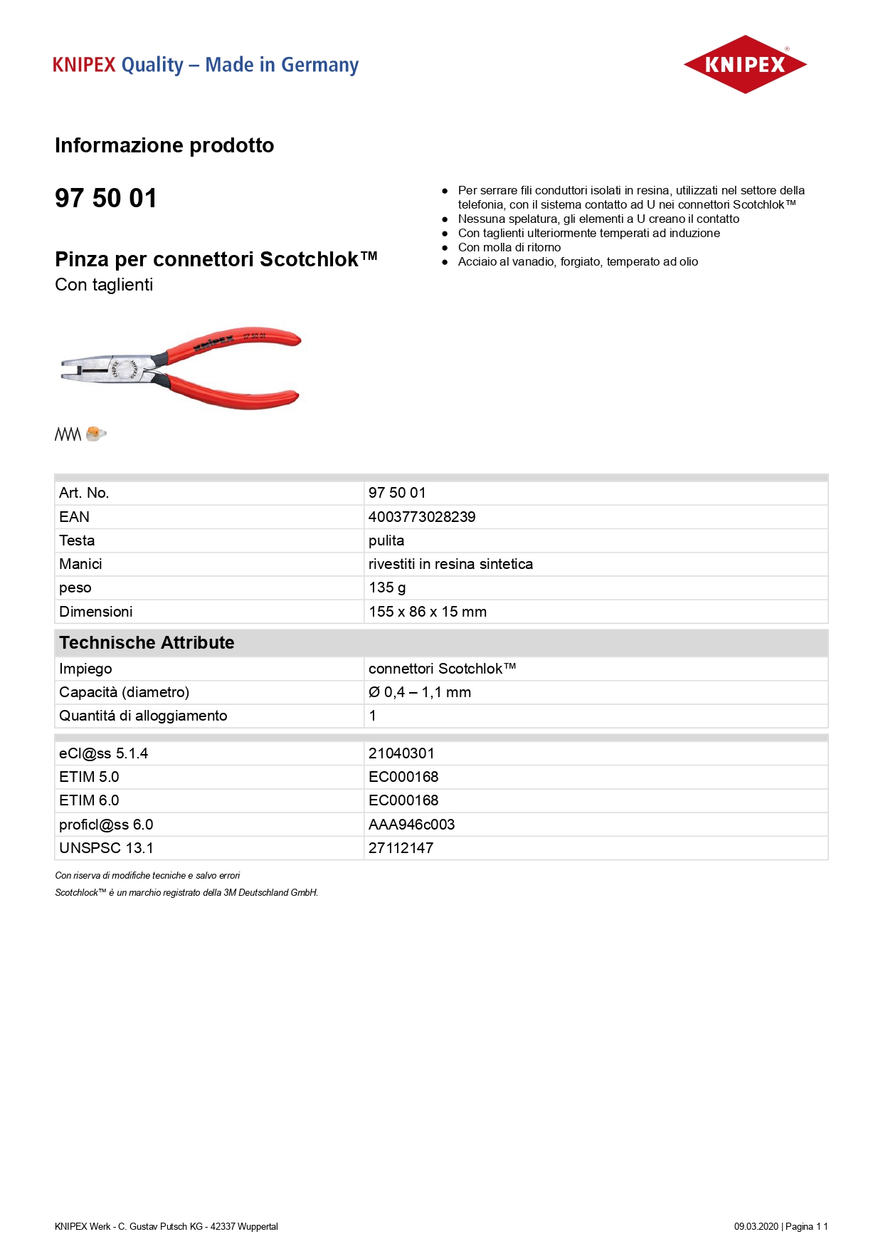 Pinza per connettori Scotchlok™ con taglienti rivestiti in resina sintetica 155 mm