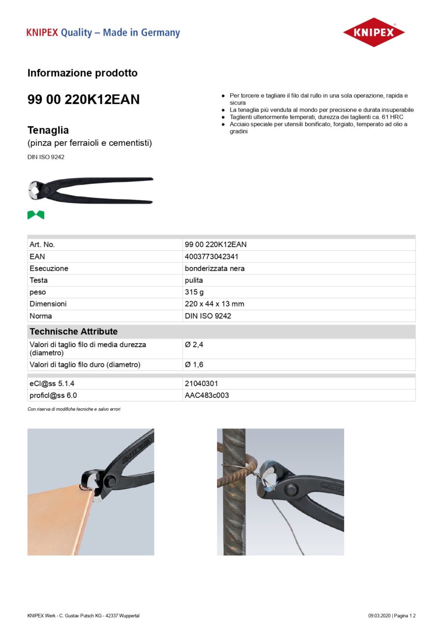 Tenaglia (pinza per ferraioli e cementisti) bonderizzata nera 220 mm