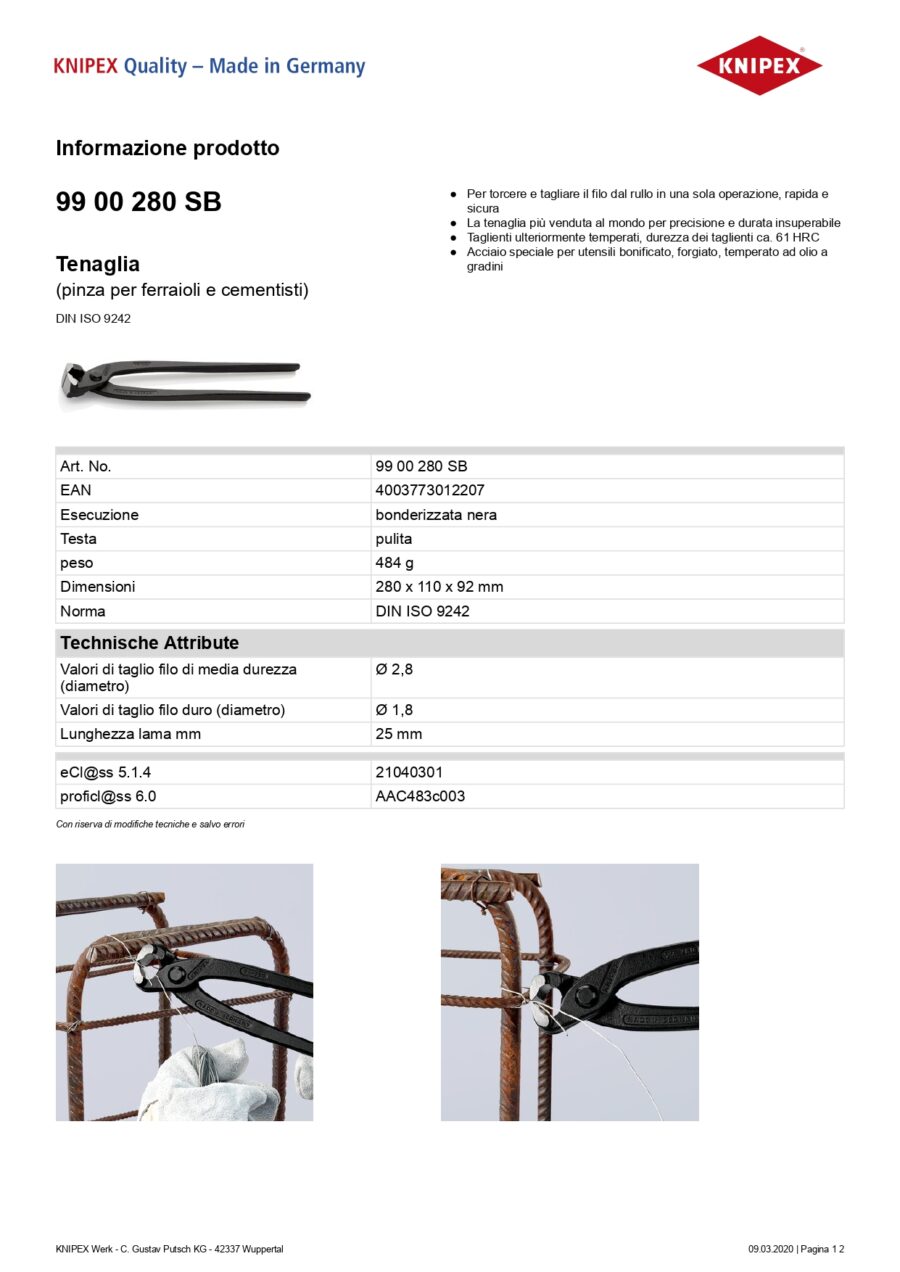 Tenaglia (pinza per ferraioli e cementisti) bonderizzata nera 280 mm (confezione self-service/blister)