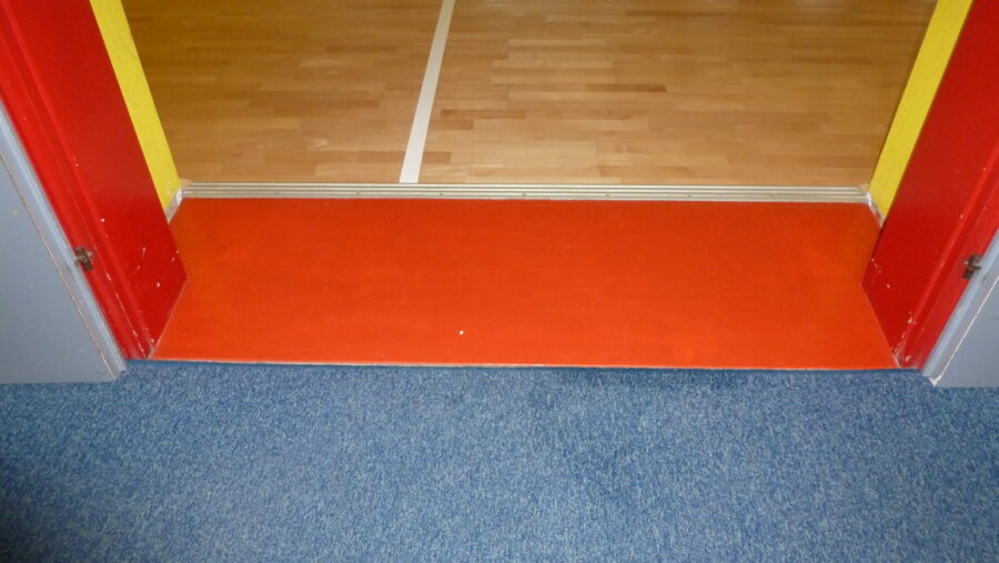 Le soglie in alluminio anodizzato hanno la funzione di raccordare il pavimento sportivo con i pavimenti dei locali adiacenti. Hanno una larghezza di 80 mm e una finitura di color argento con una copertura di anodizzazione di circa 20 micron. Tale materiale ha caratteristiche di elevata resistenza all’ossidazione e alle sollecitazioni meccaniche.