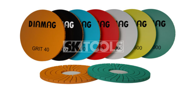 – Pad diamantati resinoidi DIAMAG: Per la lucidatura di calcestruzzo, asfalto, marmo terrazzo i pad resinoidi blastrac sono realizzati per la lucidatura professionale delle diverse tipologie di pavimentazioni. I pad resinoidi diamag possono essere utilizzati sia a secco che con acqua in funzione della caratteristiche del supporto, sia su vecchie pavimentazioni dopo l’impiego di utensili metallici che direttamente nei diversi step di lucidatura delle nuove pavimentazioni tutti i pad diamantati diamag, nei diversi diametri (ø155, ø185, ø240 mm) sono basati sulla stessa scala cromatica, per cui ad ogni colore corrisponde una grana.