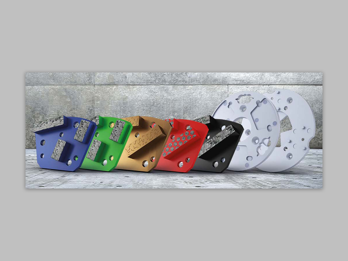 – Piatti Porta Utensili DIAMAG: Il sistema rapido diamag è appositamente progettato per agganciare o rimuovere le placchette dalle piastre portautensili, senza utilizzare martelli o viti. Le placchette vengono posizionate con magneti e perni di fissaggio e possono essere facilmente rimosse o sostituite a mano. Sono disponibili piatti portautensili per diversi modelli e marche di levigatrici planetarie presenti sul mercato.