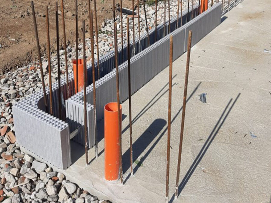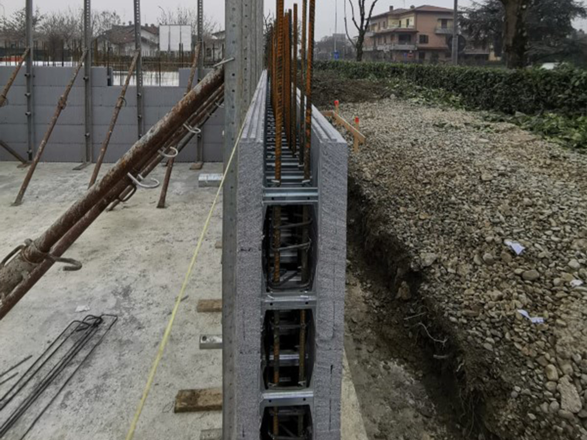 In una sola fase si realizza la struttura portante, la parete di chiusura e lโisolamento termico della parete. A maturazione del getto la parete รจ pronta per la finitura finale.