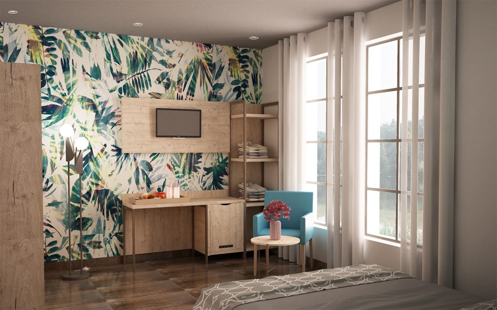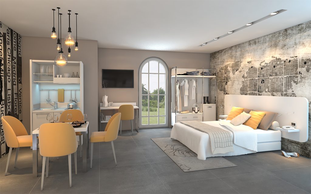 Il concept della collezione si basa sulla ricerca di un elevato grado di funzionalità e semplicità al fine di realizzare arredi che si adattano a differenti realtà ricettive.