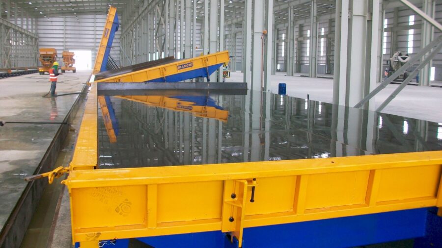 - Lamiera di getto ottenuta da coils di prima qualità di dimensioni come da richiesta del cliente (larghezza fino a 5m e lunghezza fino a 100m), spessore 10 mm, rinforzata da profili strutturali posteriori in modo da costituire un telaio resistente, appoggiata e saldata su di una struttura di base longitudinale. A richiesta la superficie di getto può essere levigata al fine di avere una finitura dell’elemento a specchio.