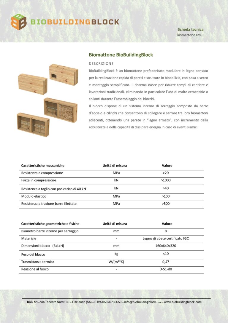 La BBB srl nasce nel 2020 come start up innovativa dalla coraggiosa visione del Founder Marco Citro, inventore del bio pannello e del bio mattone BioBuildingBlock. La BBB srl collabora con importantissimi centri di ricerca nazionali come il dipartimento Strentgh di UniSa, l’ITC-CNR, IUAV, ENEA/CNR/Certimac. Il team della start up è eterogeneo per formazione e unito da forte spirito green, spinto dalla voglia di cambiare gli schemi dell’edilizia. Obiettivo della continua e incessante ricerca e sviluppo per i prodotti BioBuildingBlock è garantire una tecnologia costruttiva sicura e sostenibile per nuovi edifici da costruire. La strategia di R&D alla base dello sviluppo tecnico della BBB srl, ha consentito di conseguire 4 brevetti nel green tech, di cui 2 di essi nell’ambito della bioedilizia rispettivamente del bio-mattone già approvato in Europa e in USA e del bio-pannello per l’isolamento termico ed acustico. BioBuildingBlock è stato pluripremiata in ambito nazionale e internazionale per l’alto valore innovativo e per la sostenibilità con premi come l’Innovation & Excellence Award nel 2022, 2023 e 2024, Il premio Innovazione America nel 2023 e 2024 e il premio BUILD Engineering & Construction 2025 e più recentemente il premio nazionale “In The Green Future” come esempio di Innovazione e Sostenibilità che rappresentano i due valori fondamentali del DNA dell’azienda BBB.