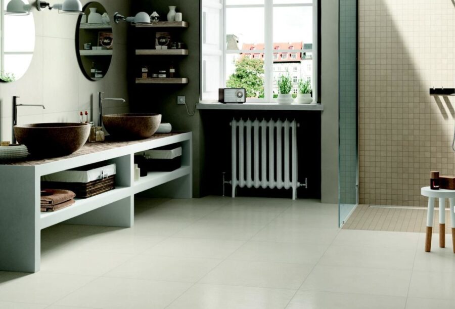 Block si ispira alla resina. Le piastrelle di ceramica sono caratterizzate da una superficie spatolata con un’alternanza di effetti lux e matt.