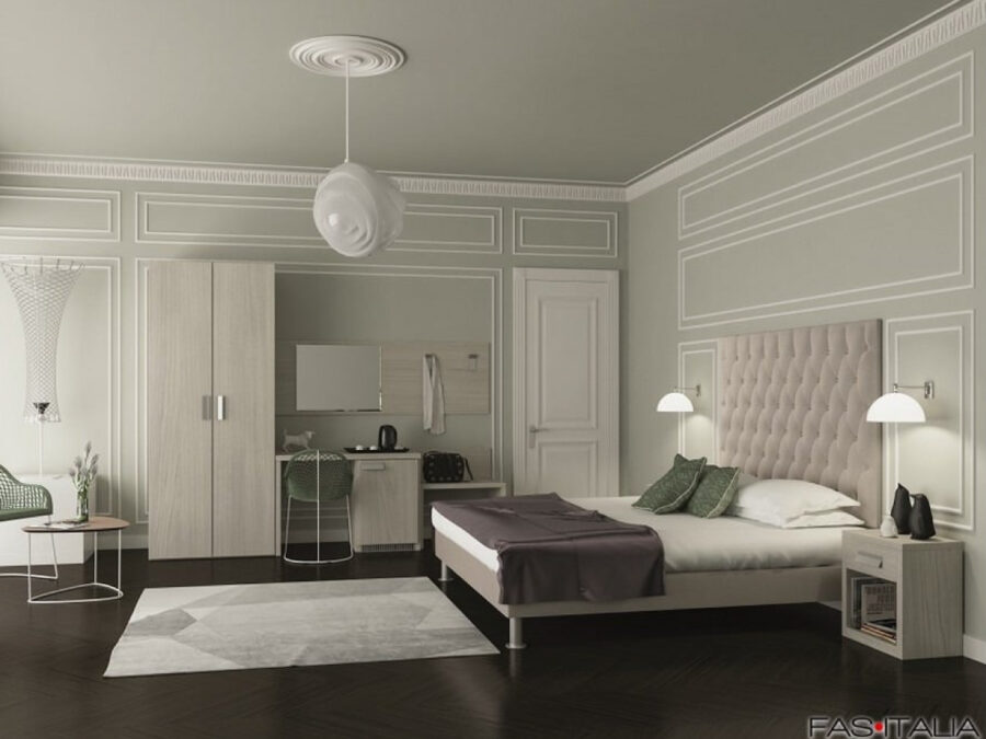 Esempio di arredamento moderno per camera completa realizzata in materiali di pregio. Stile raffinato di ispirazione classica: una proposta adatta ad ogni tipo di ambiente e per ogni tipo di accostamento. Disponibile in un’ampia gamma di finiture diverse. E’ possibile richiedere qualsiasi variazione di configurazione.