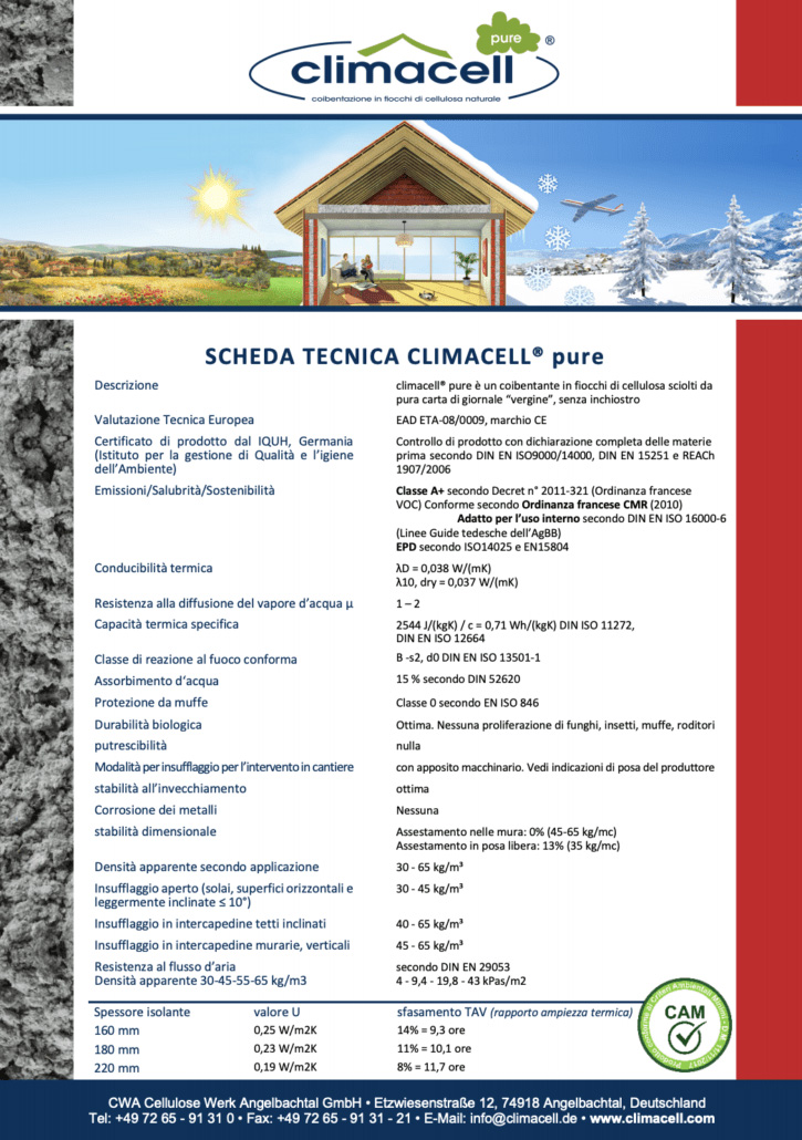 climacell pure viene usato in elementi strutturali in strati verso l’interno dell’abitazione (cappotto interno, pavimento), ma tecnicamente è idoneo per gli stessi impieghi di climacell S.