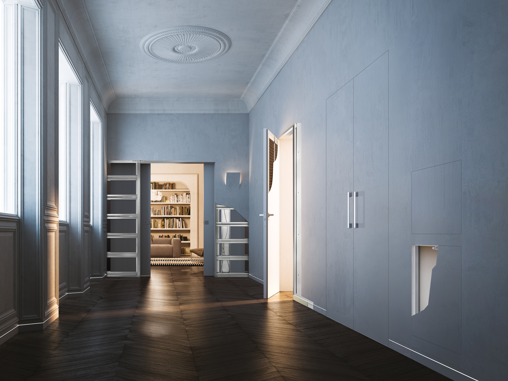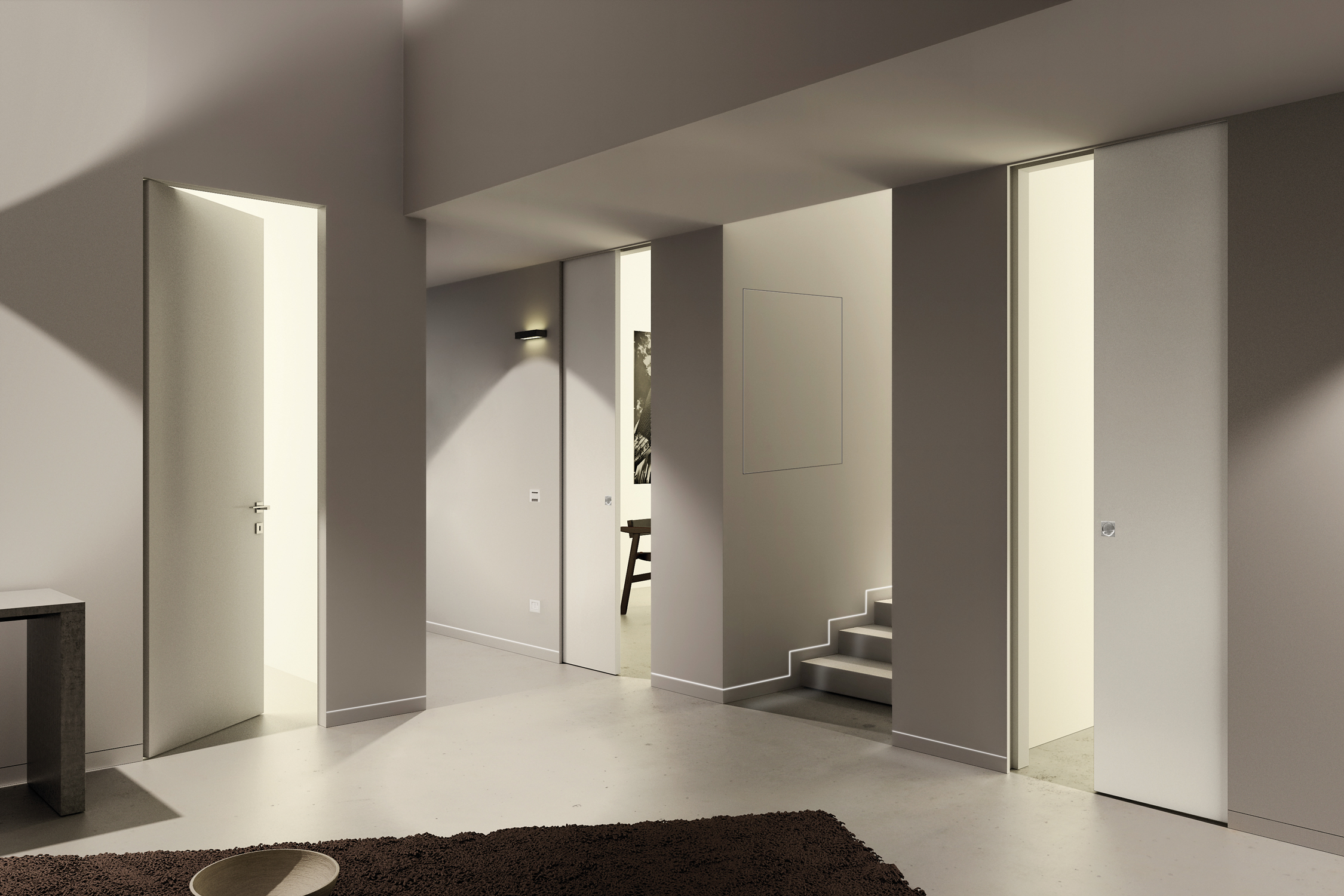 La ECLISSE Syntesis Collection propone sistemi per porte scorrevoli a scomparsa con stipiti e coprifili, innovativi, robusti, ispezionabili e facili da manutenere e da installare.