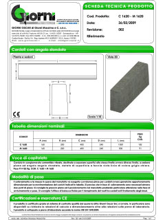 I cordoli in produzione si distinguono principalmente in due tipologie: lavorati con vibro compressione caratterizzati da rispondenza millimetrica alle misure di nomina e dal facciavista perfettamente liscio; lavorati con vibrazione ad alta frequenza e sformatura in continua caratterizzati da elevate resistenze meccaniche, da bassi assorbimenti d’acqua e da un’elevata durabilità nel tempo anche se soggetti agli agenti atmosferici. Tutti i cordoli sono certificati CE in conformità con le normative comunitarie di cui alla UNI EN 1340:2004.