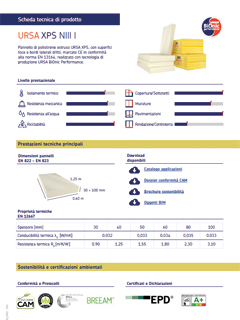 Feltro arrotolato idrorepellente in lana di vetro trattata con speciali resine termoindurenti marcato CE in conformità alla norma EN 13162, rivestito su una superficie con carta kraft, con funzione di freno al vapore, realizzato con tecnologia di produzione URSA BiOnic Performance.
