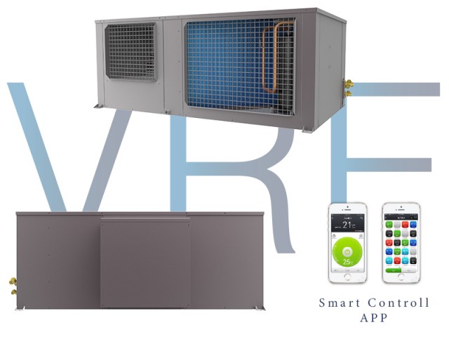 I condizionatori senza unità esterna ad alta potenza Elfo VRF sono progettati per consentire una facile installazione negli ambienti commerciali, dove non è permesso l’uso di condensanti esterne.