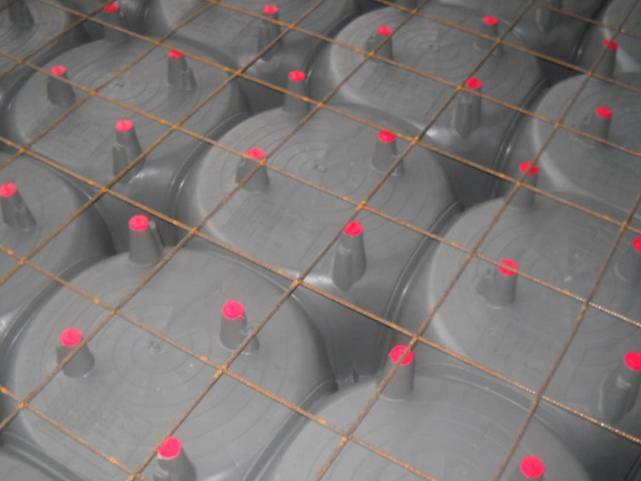 - Riduzione dei tempi di armatura grazie alla presenza di distanziatori integrati con gli ugelli atti ad ospitare la rete elettrosaldata.
