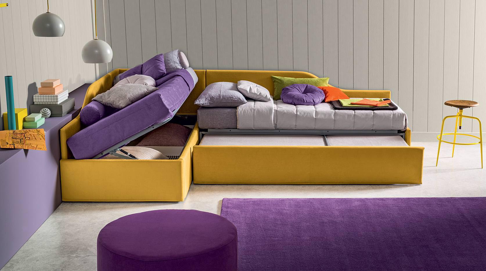 Erik è un sistema di letti singoli, che si possono adattare a più ambienti, dalla camera da letto al living. Si ha la possibilità di aggiungere un comodo contenitore o un terzo letto, facendo di questo programma un organismo eclettico e versatile.