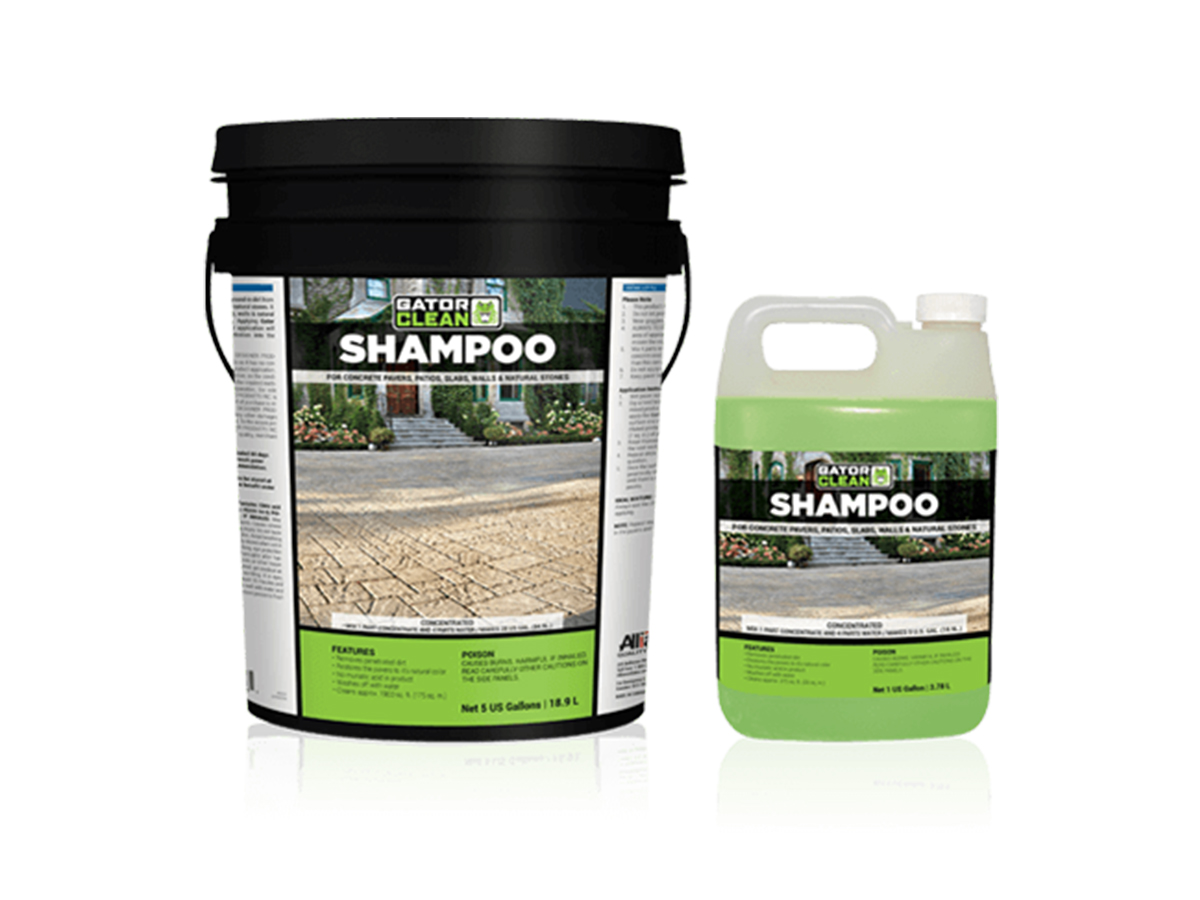 Gator Clean Shampoo è raccomandato per rimuovere sporcizie impregnate nei pori del pavimento in cemento o pietra. Rende il pavimento più pulito e brillante.