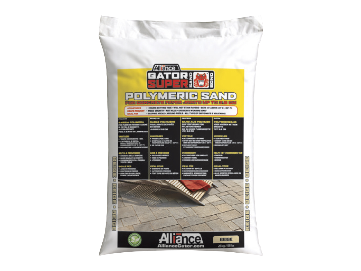 Super Sand Bond è una miscela di leganti polimeri e di sabbia calibrata disponibile in Beige, Grigio Ardesia, Avorio e Nero. L’applicazione di Super Sand Bond è quasi identica all’utilizzo della semplice sabbia per fughe di pavimentazioni eccetto che nell’applicazione dell’acqua. Una volta che Super Sand Bond s’indurisce, questa diventa molto solida e si blocca tra le fughe della pavimentazione. Questo legante solido aiuta a mantenere la pavimentazione fissa in loco, con flessibilità e durata.
