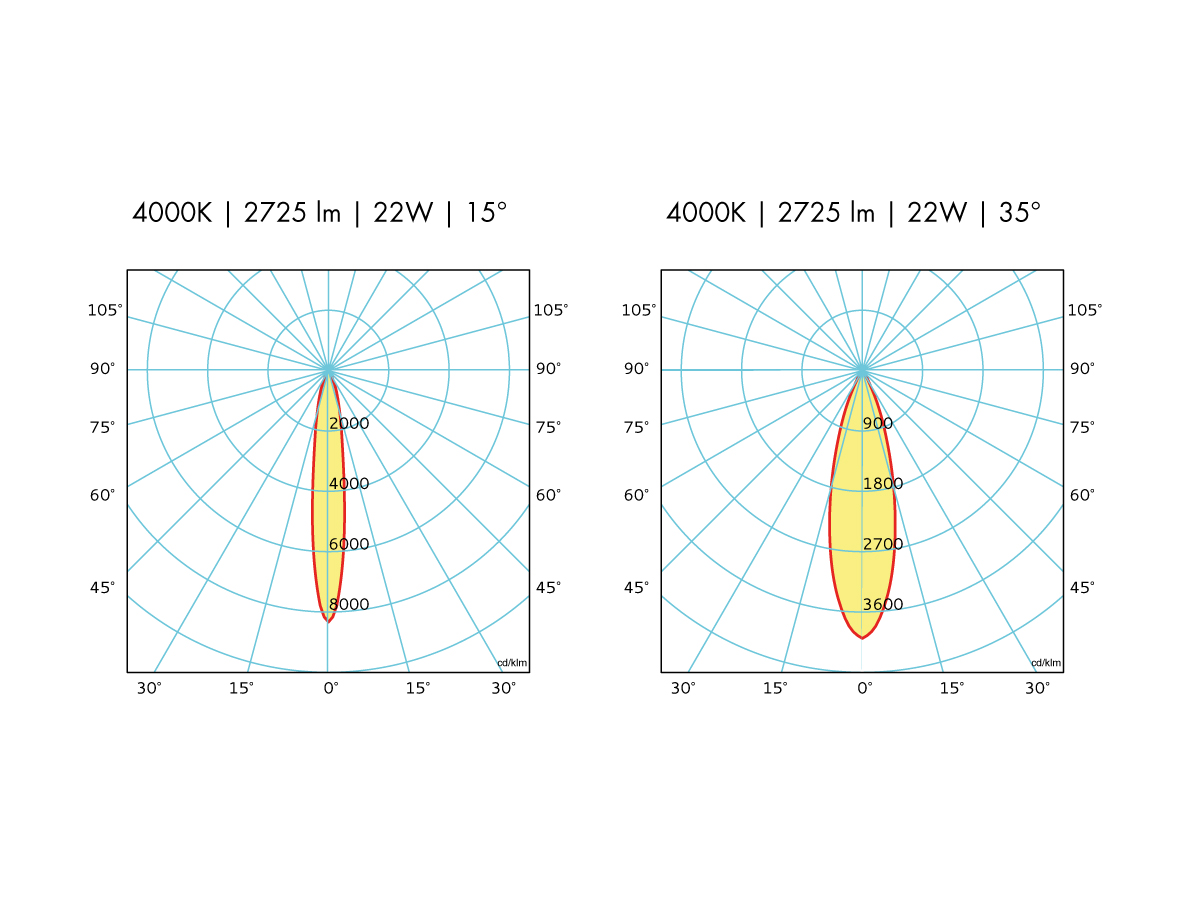Riflettori in alluminio anodizzato intercambiabili: Spot 15°, Wide Food 35°