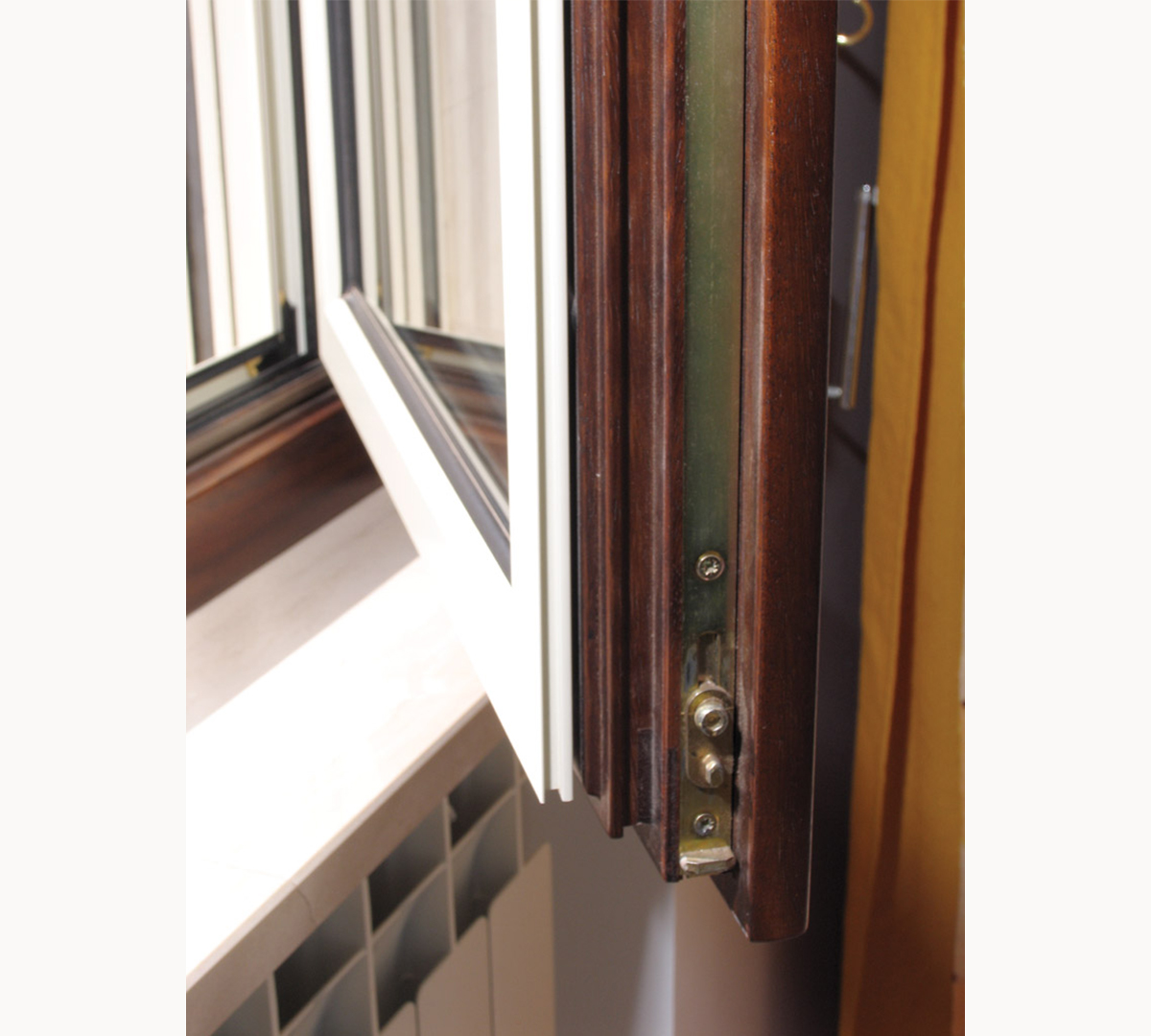 L’infisso legno-alluminio e legno- bronzo risponde bene alle esigenze di alta protezione esterna del legno. Si tratta di un infisso in legno ma con un profilo esterno in alluminio o bronzo personalizzabile nelle forme e nei colori: Decorati legno, decorati metallo, bronzo, colori opachi o strutturati. Una vasta gamma di scelta per un infisso esente da manutenzione esterna. Il corpo dell’infisso, completamente in legno, conserva invece tutte le qualità dell’infisso tradizionale.