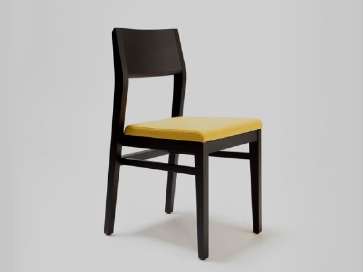 Famiglia composta da sedia, sgabello e lounge. Dal design elegante e attuale รจ caratterizzata da forme arrotondate. La poltrona e la sedia hanno la struttura in legno di faggio con lo schienale e la seduta completamente imbottiti con tessuti o pelli o con lo schienale imbottito internamente e a vista sul retro.