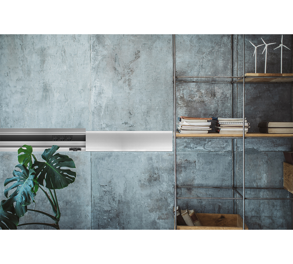 In armonia con la parete. Nessuna presa, nessun collegamento dati e multimediale, nessun alimentatore pc: alla nostra vista è concesso solo ammirare un elegante pannello frontale in alluminio.