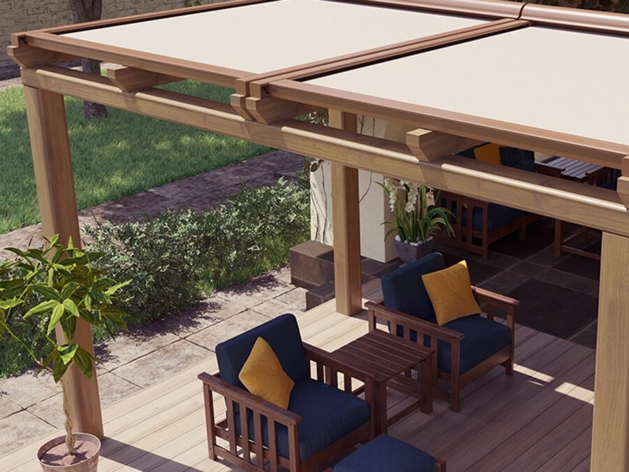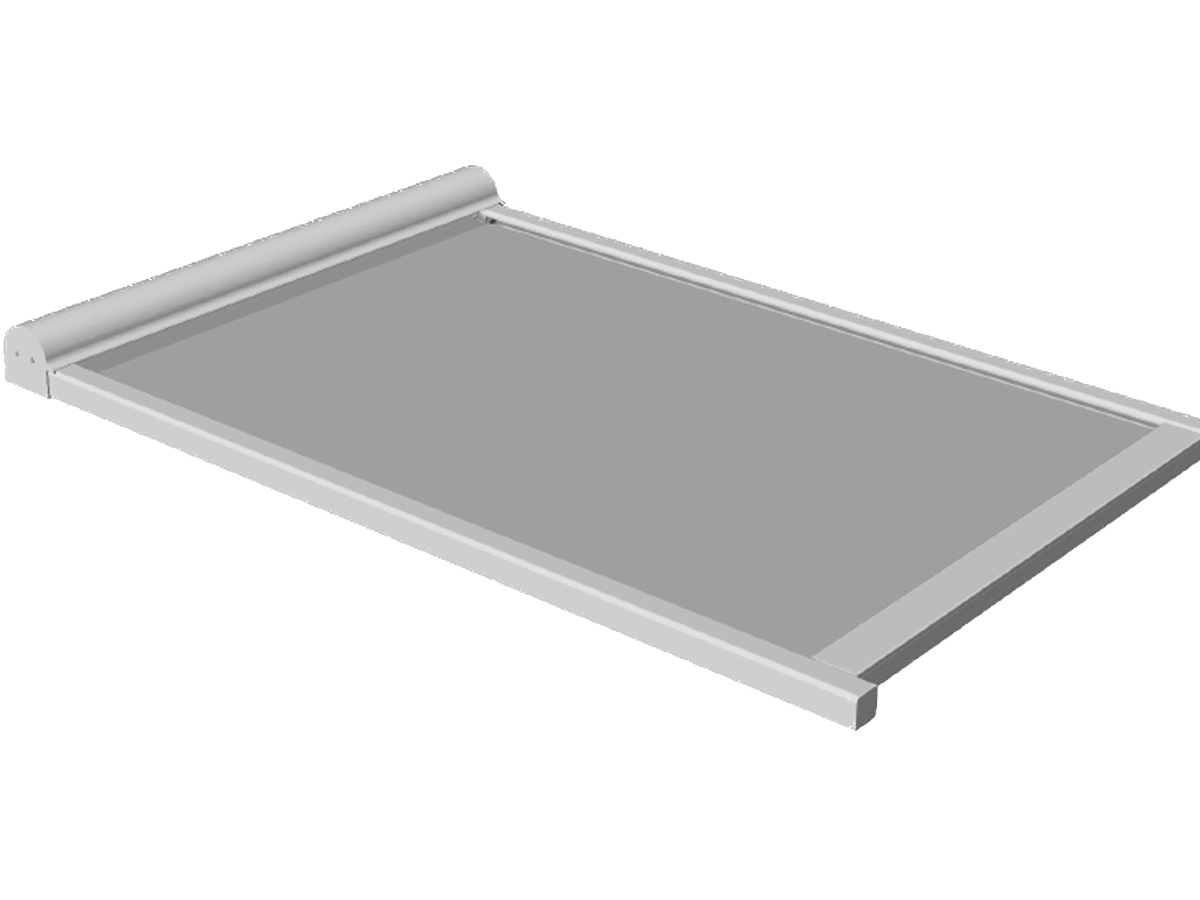 L’intera struttura è in alluminio, la tensione del telo è garantita da un sistema motorizzato che agisce su una speciale molla posizionata all’interno del terminale e tramite un sistema di carrucole e cavi agganciati direttamente al rullo avvolgitore.