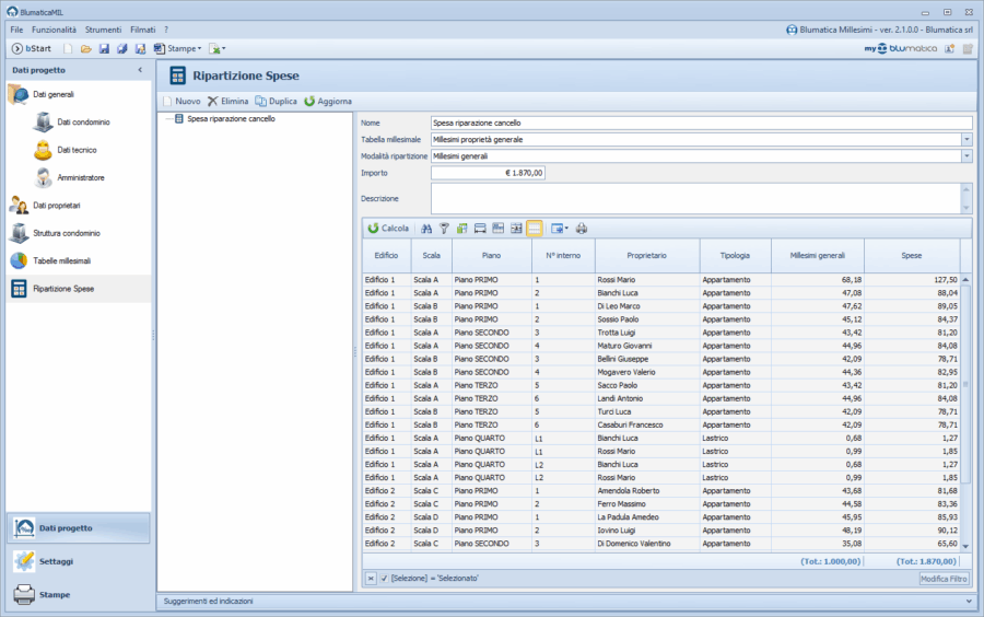 Sofwtare per il calcolo e la gestione delle tabelle millesimali per qualsiasi tipologia di condominio.
