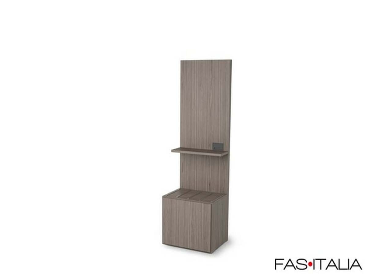 Mobile per minibar a parete multifunzione, composto da mobile con 1 anta, il cui piano รจ dotato di astine antigraffio per le valigie. Dispone di mensola porta oggetti (63×25 cm) ed รจ attrezzato per nascondere i cavi del minibar a parete (non compreso), Linea moderna e essenziale, perfetto per completare l’arredo della camera. Puรฒ essere realizzato con misure personalizzate e in diverse finiture di colore. Il prezzo รจ riferito alla configurazione proposta, minibar cod. 11538 escluso. Dimensioni: 63x52x190 cm (LxPxH).
