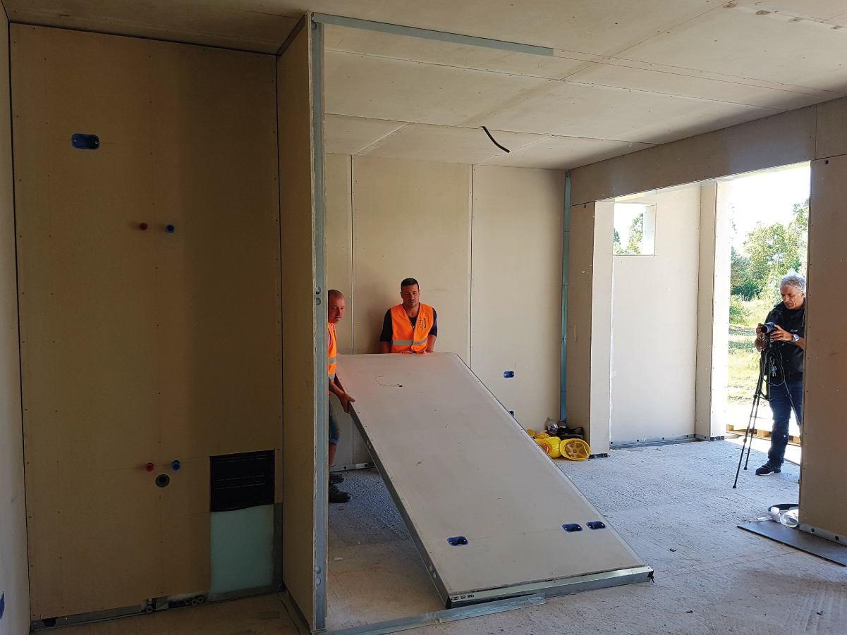 Parete Interna doppia a secco con sistema Jendy JossĀ® denominato MODULO JJ ad elevate prestazioni acustiche e meccaniche, composta da moduliĀ “preassemblati” in stabilimento,