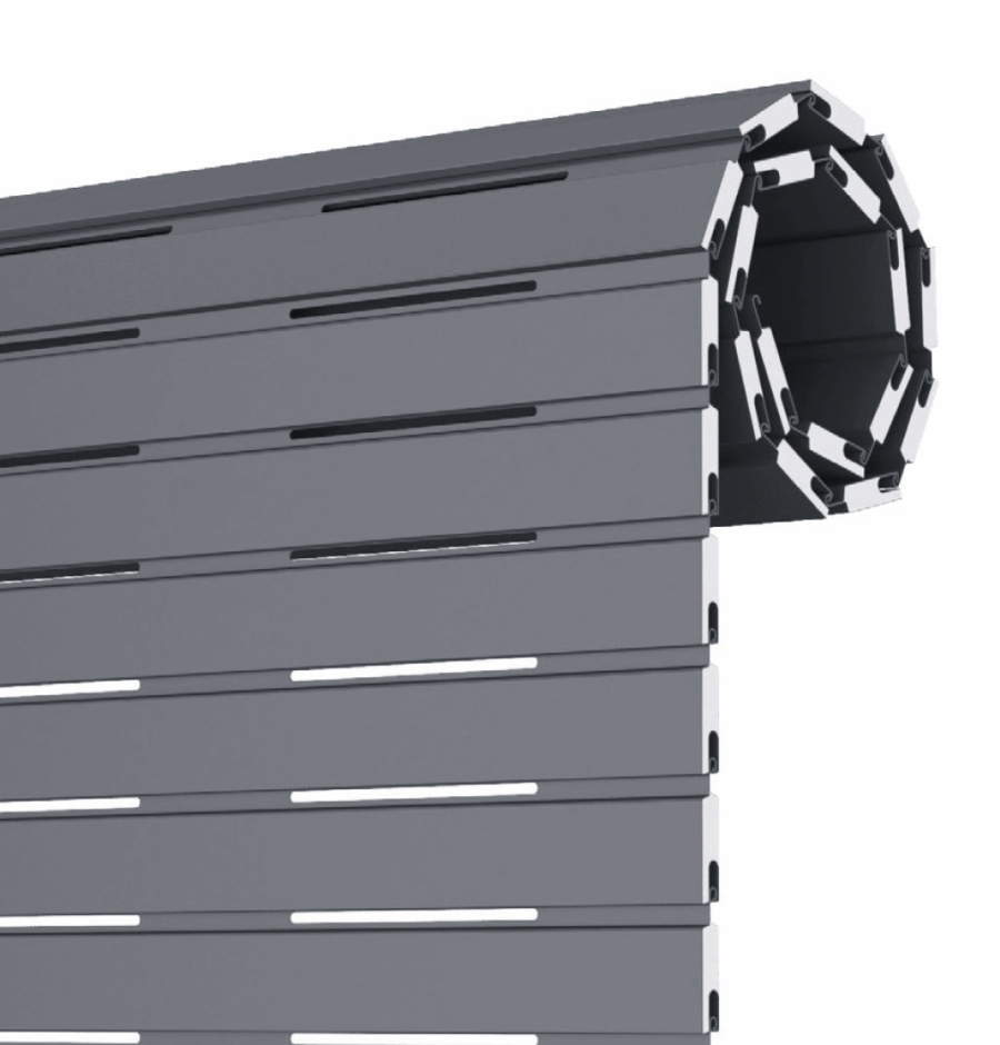 Oltre V รจ un sistema di protezione ad avvolgimento verticale per grandi aperture con zip antivento altamente resistente.