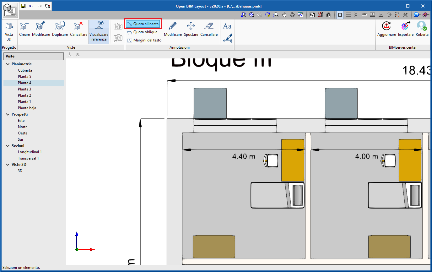 Il software oltre a generare viste, permette anche di quotarle. In “Open BIM Layout” si possono disegnare due tipi di quota: