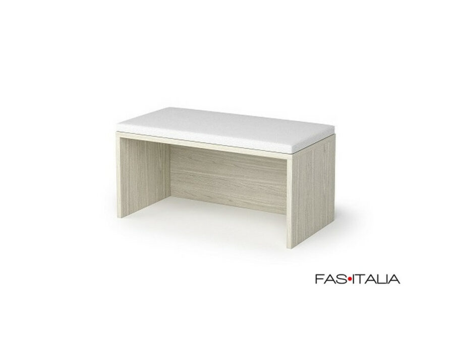 Panca fondoletto in legno. Con cuscino imbottito e rivestito in ecopelle sintetica ignifuga. Dimensioni: 93,2×44,9×41 cm (LxPxH).