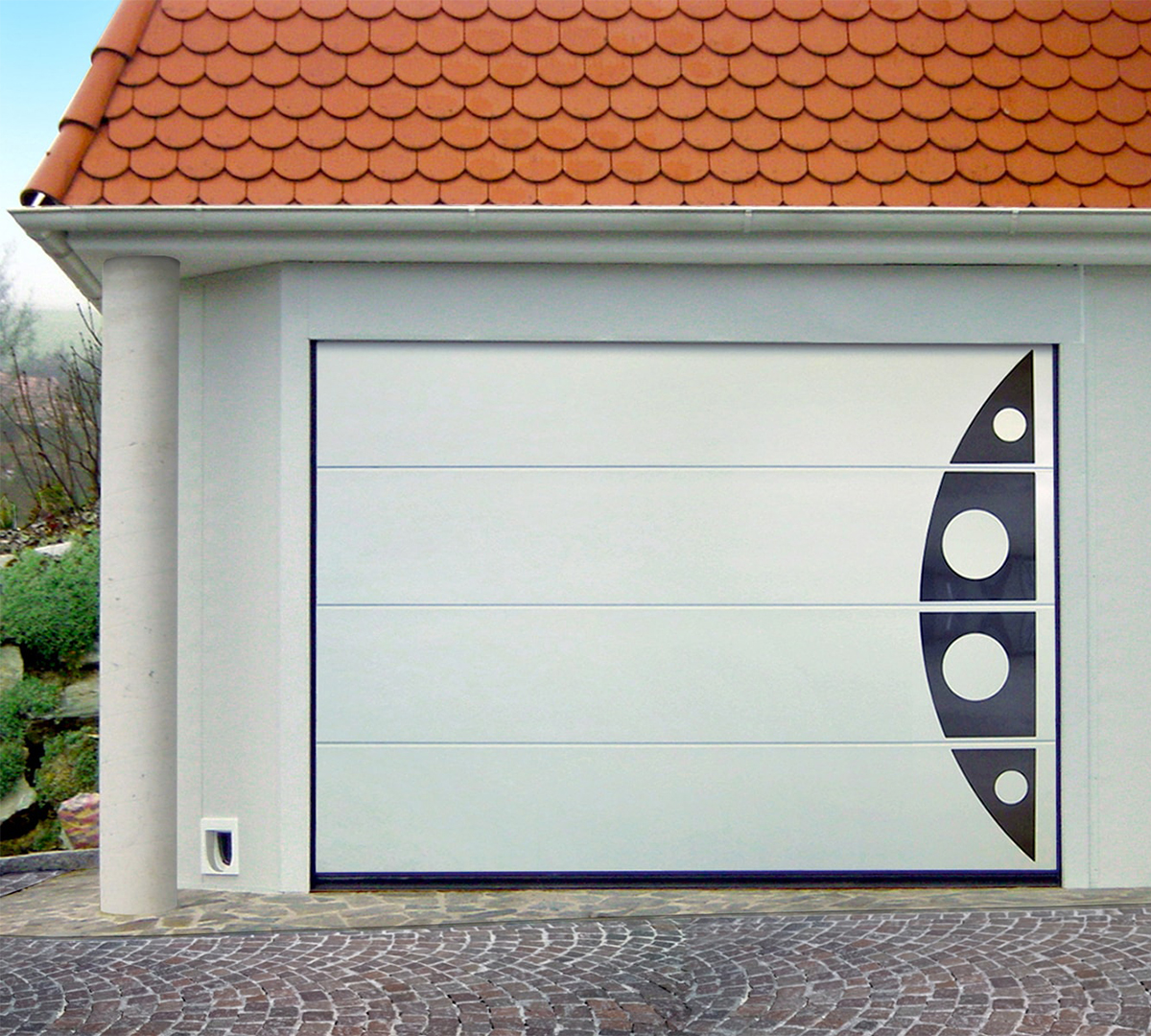 Portone sezionale con pannelli Secur-Pan da 495 e 615 in acciaio coibentati spessore 42 mm.
