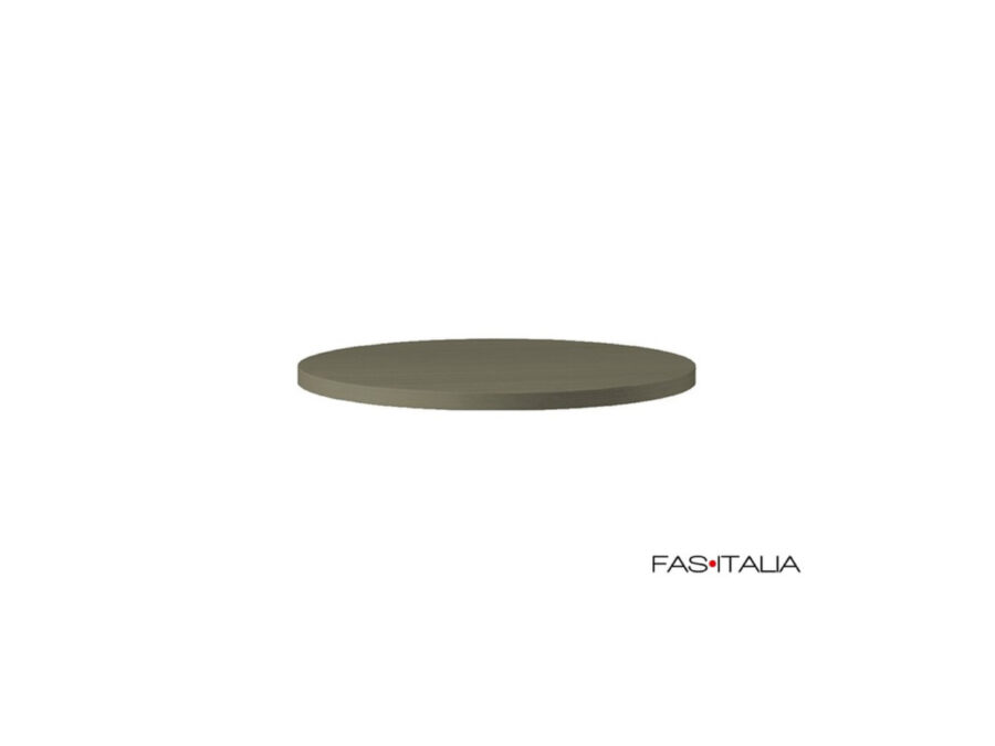 Piano rotondo in laminato di diametro 80 cm e spessore 3 cm.