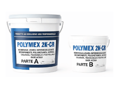 POLYMEX 2K-CR รจ un impermeabilizzante bicomponente, a base di resine poliuretaniche alifatiche, formulato al fine di ottenere un rivestimento elastico, pedonabile e piastrellabile, resistente ai raggi U.V. e stabile alle alte e basse temperature. POLYMEX 2K-CR รจ fornibile anche nella versione fibrorinforzata (POLYMEX 2K-CR-F).