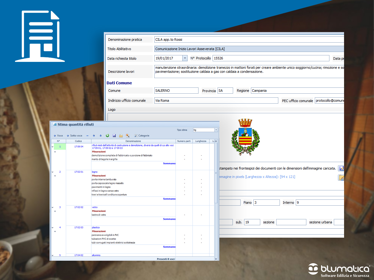 Stima della quantità dei rifiuti prodotti dall’intervento edilizio e compilazione della dichiarazione dei rifiuti speciali.