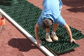 2. Si posiziona la prima griglia in alto a sinistra della superficie da pavimentare;