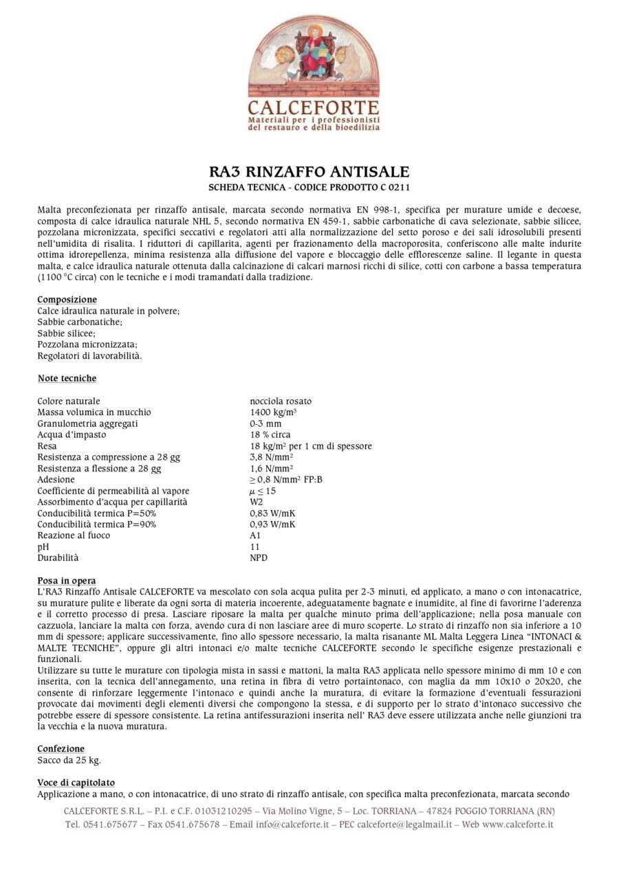 RA3 RINZAFFO ANTISALE è un materiale marcato secondo normativa EN 998-1.