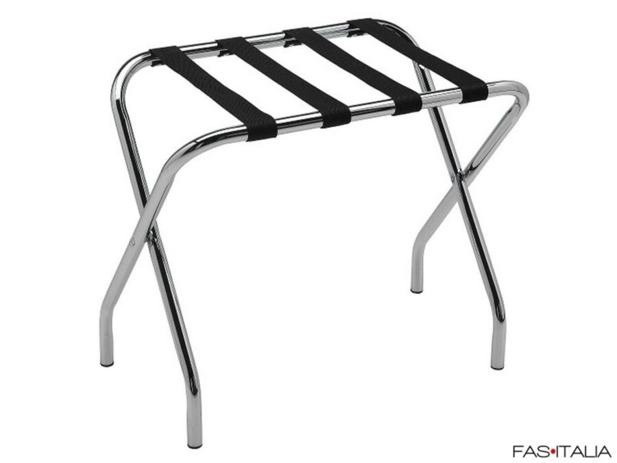 Reggivaligia con struttura pieghevole in tubo di acciaio cromato, dal diametro di 2,5 cm, completo di piedini in gomma.
