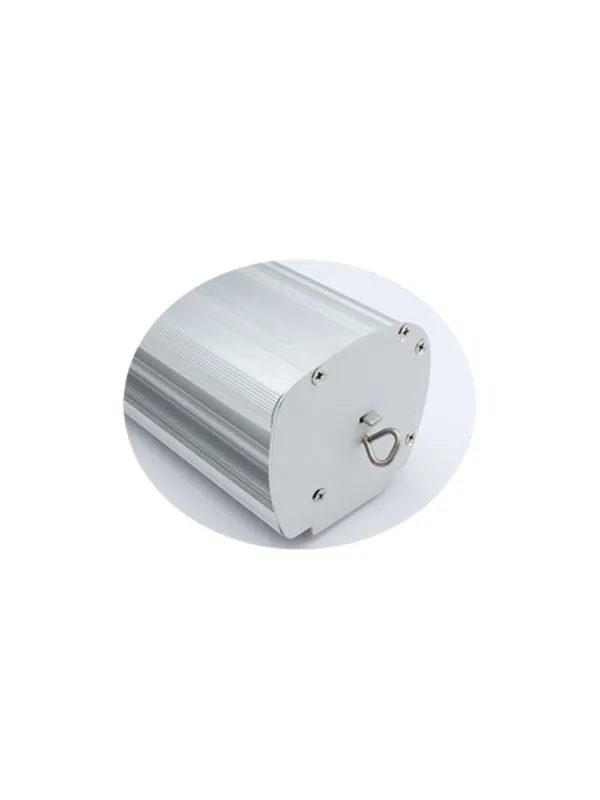 Sistema espositivo Portabanner Avvolgente. Alla base si fissa il banner sulla fascia biadesiva 3M.