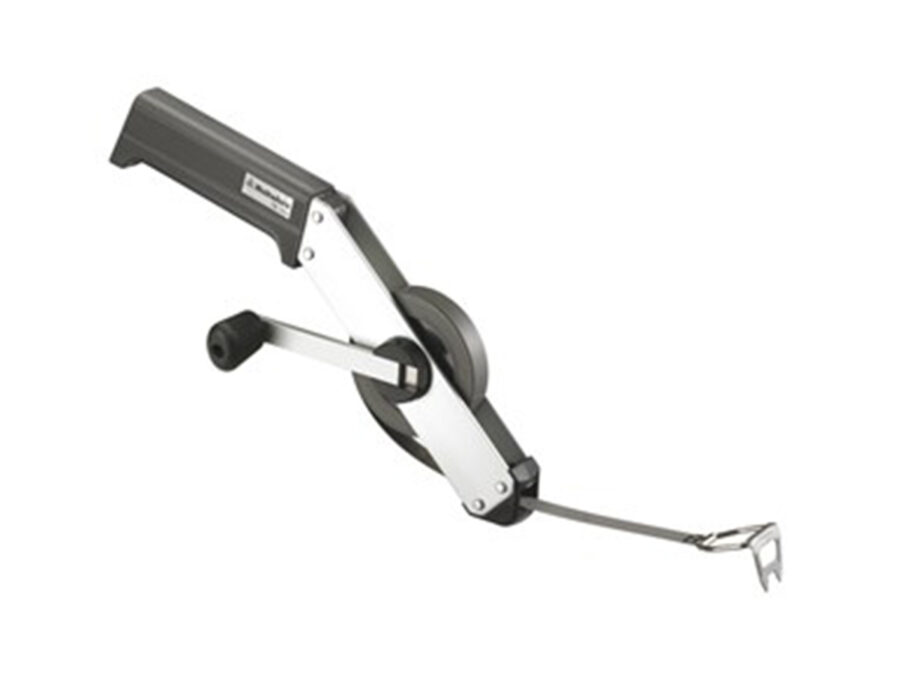 Rotella metrica a nastro in acciaio inossidabile acidato, largo 13 mm, graduato in millimetri e con telaio in alluminio. Attaco di tipo A.