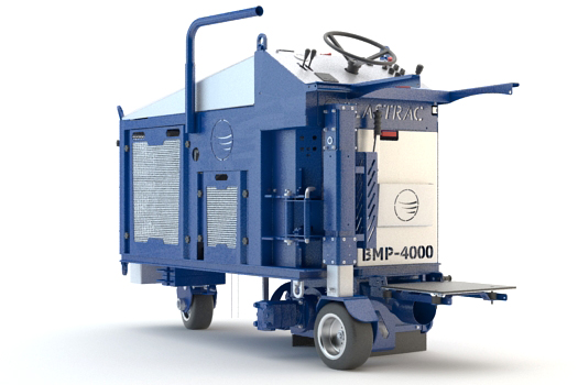 La Blastrac BMP-4000 ĆØ una nuova pesante attrezzatura con uomo a bordo, ideale per grandi applicazioni come per esempio la costruzione stradale e di pavimentazioni industriali. La BMP-4000 ĆØ una attrezzatura multifunzionale, può essere utilizzata come fresatrice o come taglierina. Cambiando il motore idraulico si può facilmente passare dallāimpiego del tamburo con denti fissi per fresare a un tamburo con lame diamantate. Ha una doppia regolazione idraulica micrometrica per impostare la profonditĆ di intervento, e permette di lavorare con estrema precisione, eliminando il rischio di deterioramento sottofondo. Lāelevato peso garantisce alta precisione e stabilitĆ .