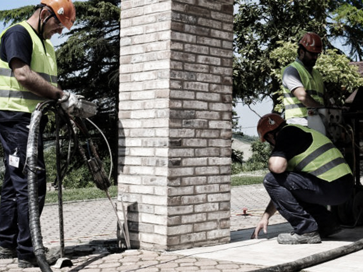 Tecnologia unica per il consolidamento delle fondazioni con iniezioni mirate di resine espandenti.
